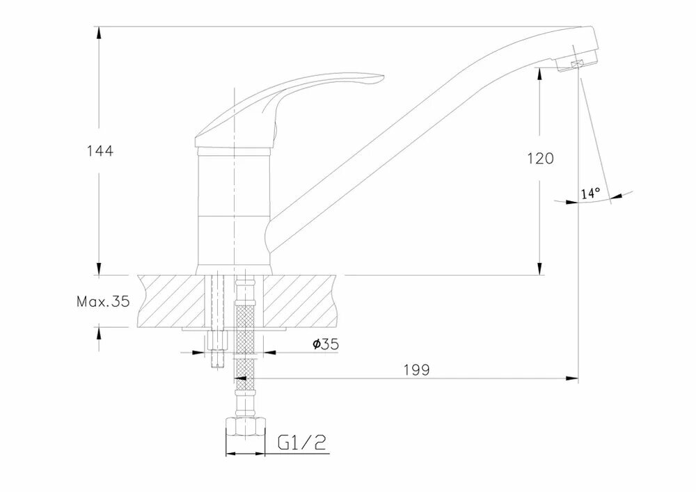Смеситель для кухни (мойки) HAIBA HB70088 (под камень) однорычажный