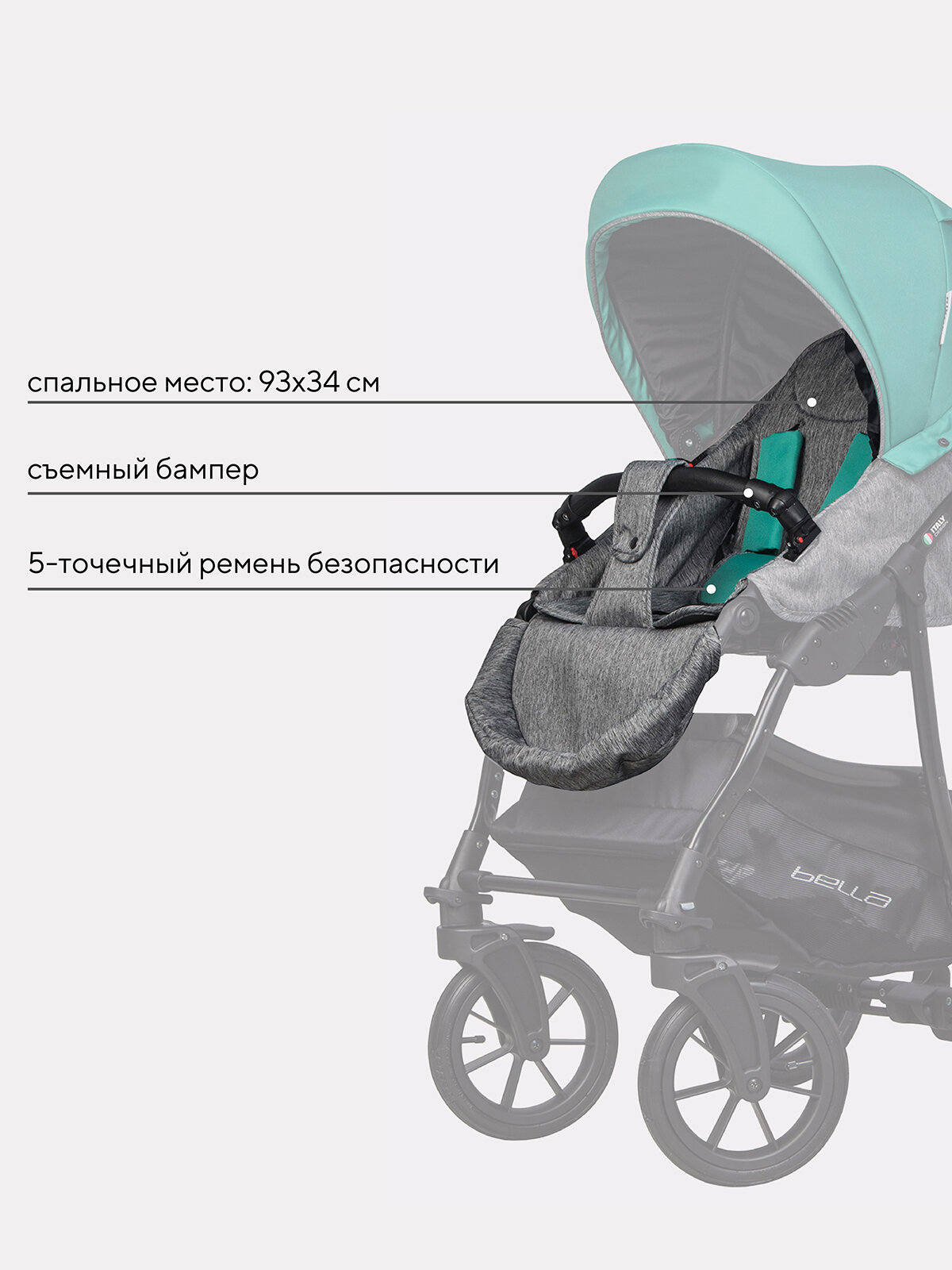 Коляска детская универсальная Riko Basic Bella 2 в 1 серый/малахит информация: