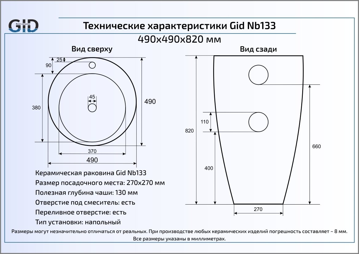Раковина Gid Nb133 информация: