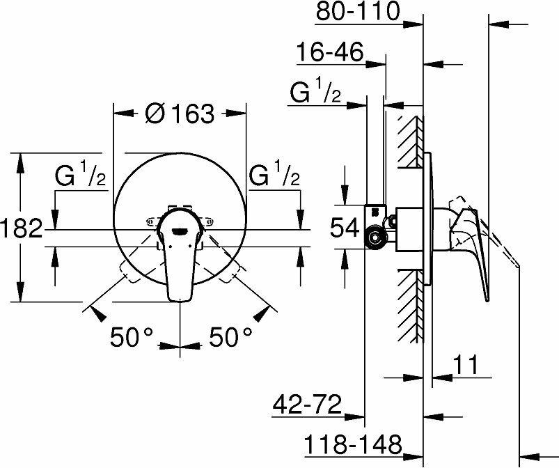 Смеситель для душа GROHE BauFlow скрытого монтажа, в комплекте с монтажной частью, хром (29112000)