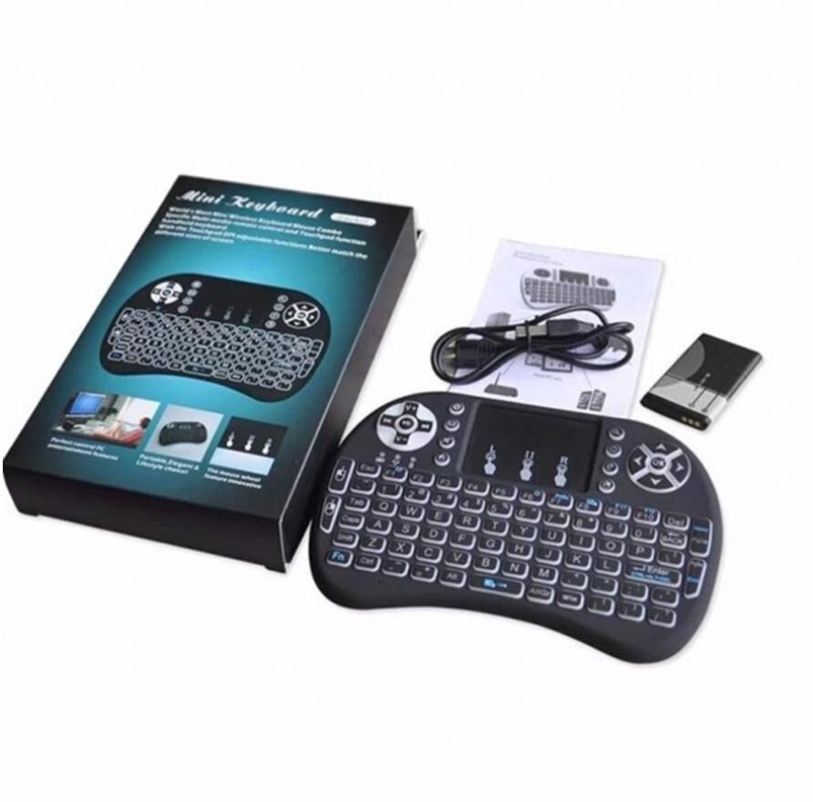 Беспроводная мини клавиатура и мышь с RGB подсветкой (с тачпадом) i9 для телевизора, тв приставки, проектора, ПК (Черная)