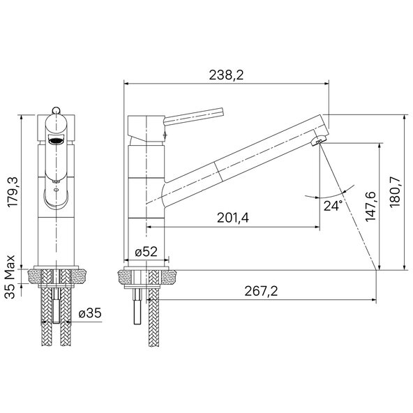 | Высота излива | 148 мм / 180 мм |