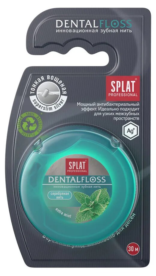 Зубная нить SPLAT Professional DentalFloss c волокнами серебра, 30 м