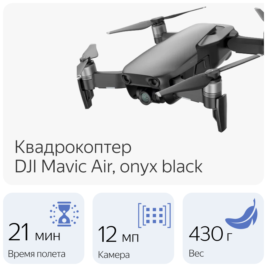Мы выбрали 10 лучших цен на Квадрокоптер DJI Mavic Air, onyx black. Перед тем как купить Квадрокоптер DJI Mavic Air, onyx black посмотрите найденные предложения из Яндекс Маркета и других сайтов на основе XML фидов.