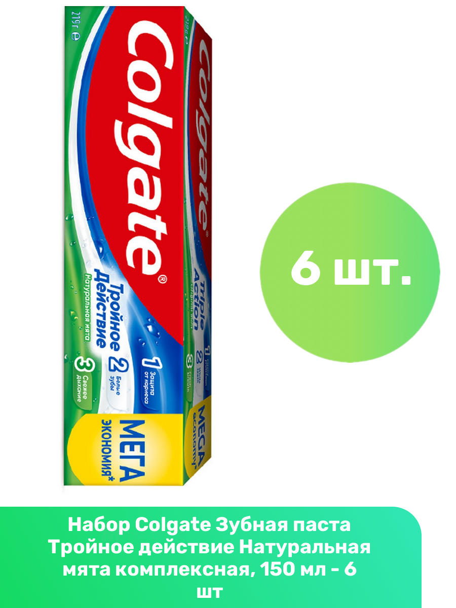 Colgate зубная паста Тройное Действие Натуральная мята 150 мл. х 6 шт. информация: