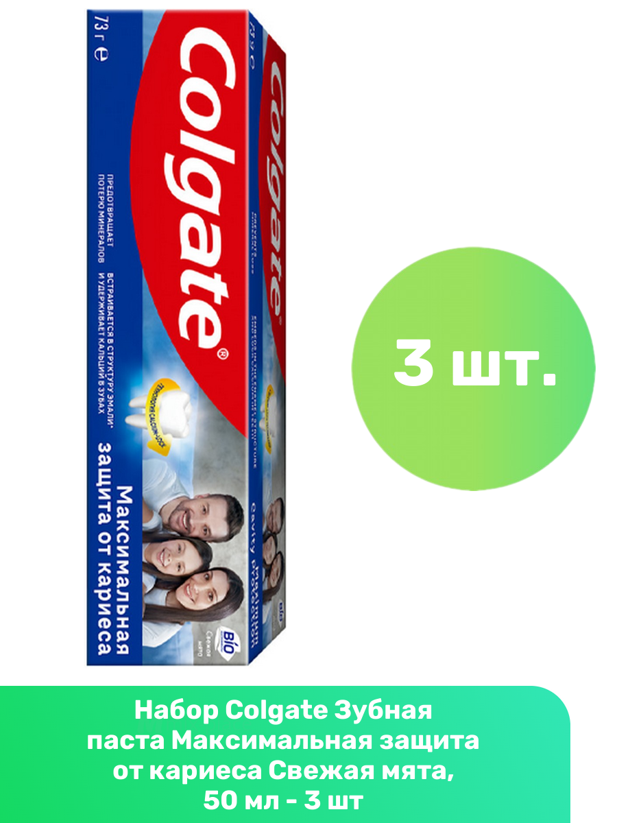 Colgate Зубная паста Максимальная защита от кариеса Свежая мята, 50 мл, 3 шт информация: