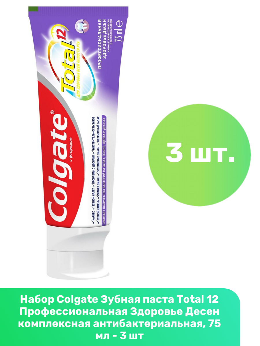 Colgate Зубная паста Total 12 Pro Здоровье десен, 75 мл, 3 шт информация: