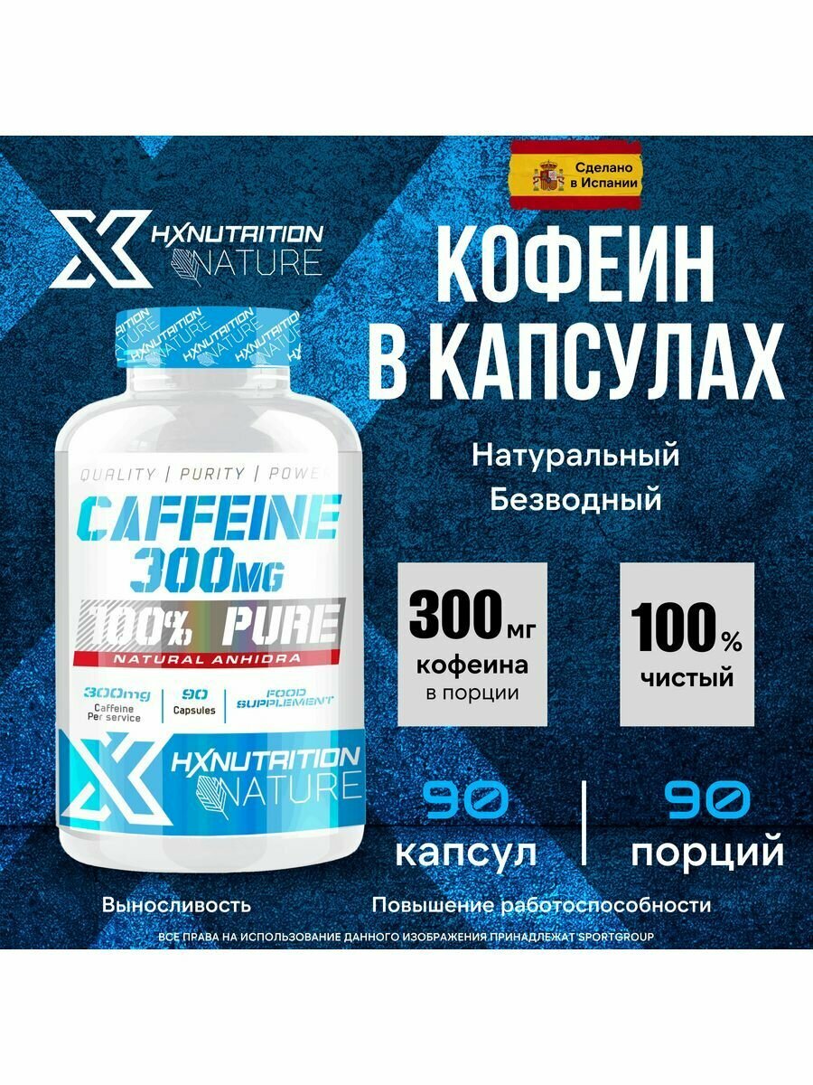 Энергетики HX Nutrition Nature Caffeine 300 mg 100% Pure (90 капсул) информация: