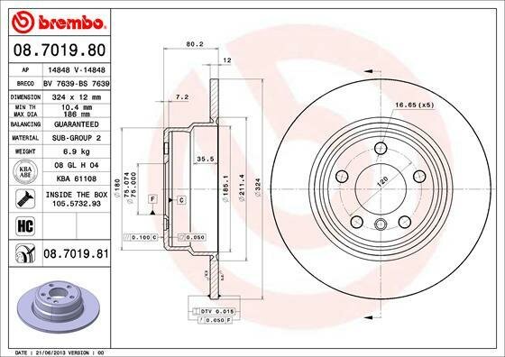 ( 08.7019.81 ) Тормозной диск информация: