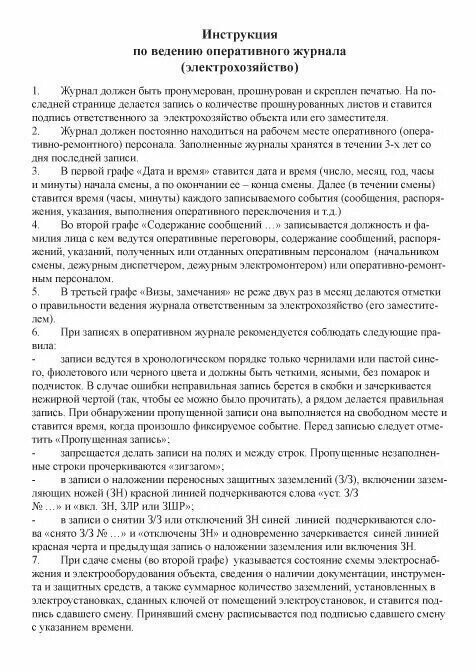 Оперативный журнал по электрохозяйству информация: