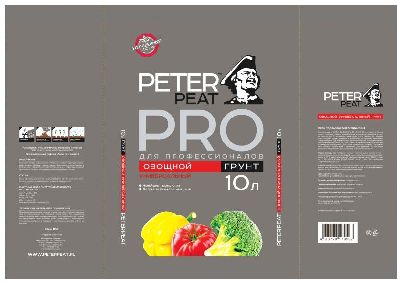 Грунт PETER PEAT Линия Pro овощной универсальный, 10 л, 3.8 кг информация: