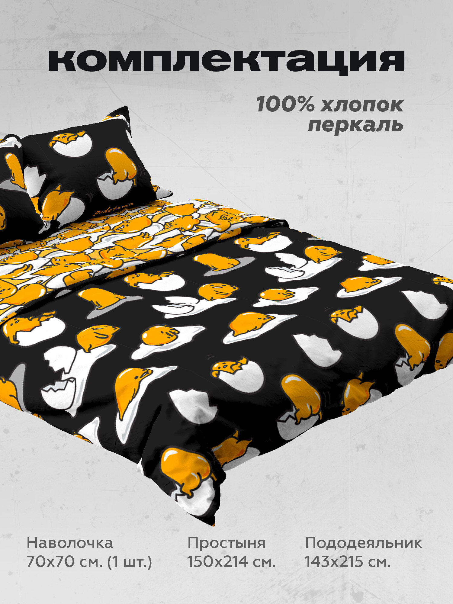 10 цен на Комплект постельного белья 1.5 поплин "Gudetama" (70х70) рис. 16640-2/16641-1 Gudetama Black