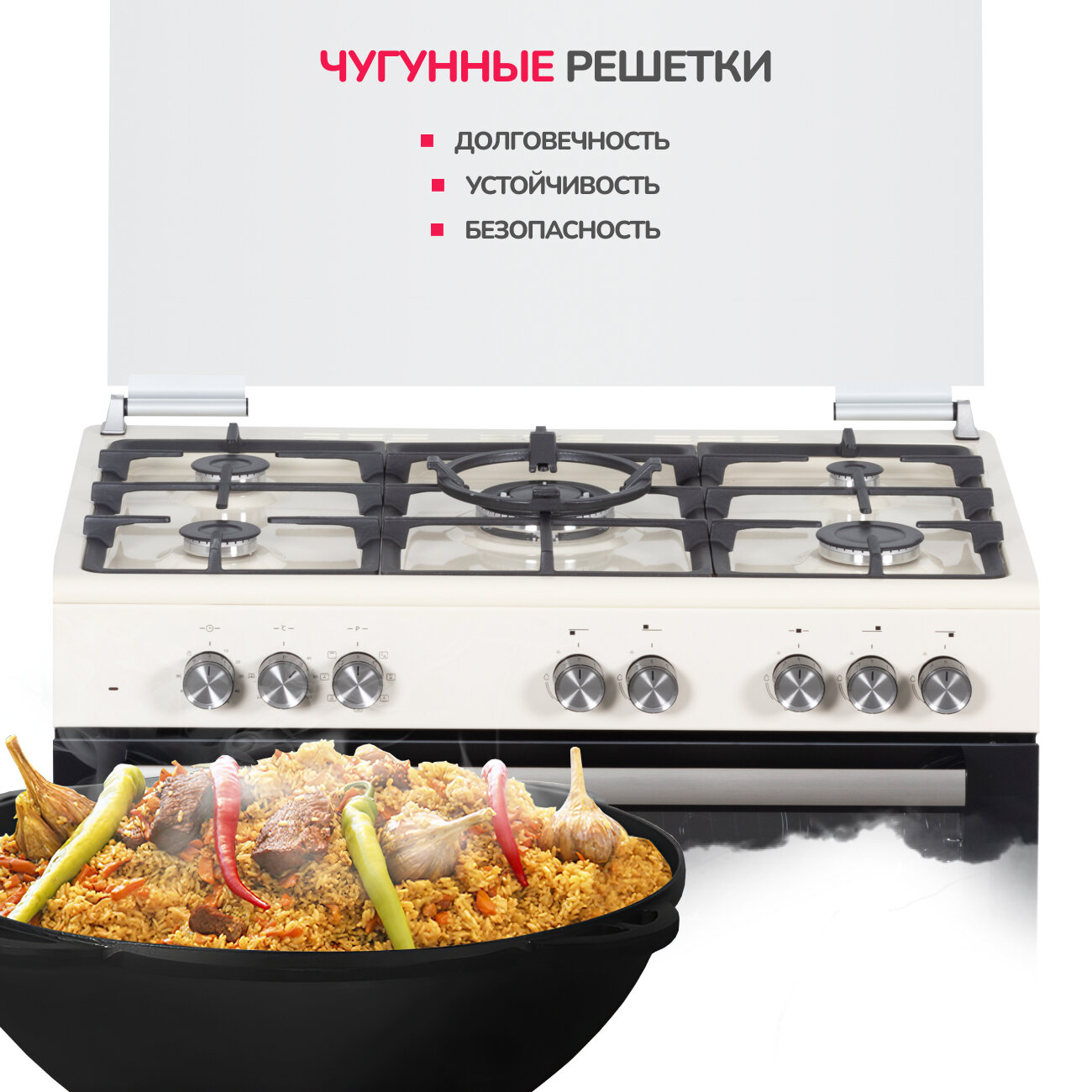 Газовая плита кухонная, 57см, электрическая духовка, чугунная решетка , таймер, AXELDORF FG-0