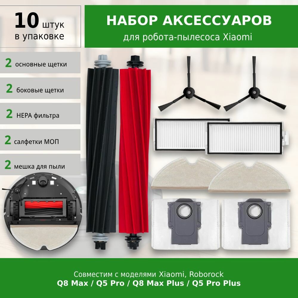 Отзывы на Комплект аксессуаров для робота-пылесоса Xiaomi Roborock Q8 Max, Q5 Pro, Q8 Max Plus, Q5 Pro Plus (Black)