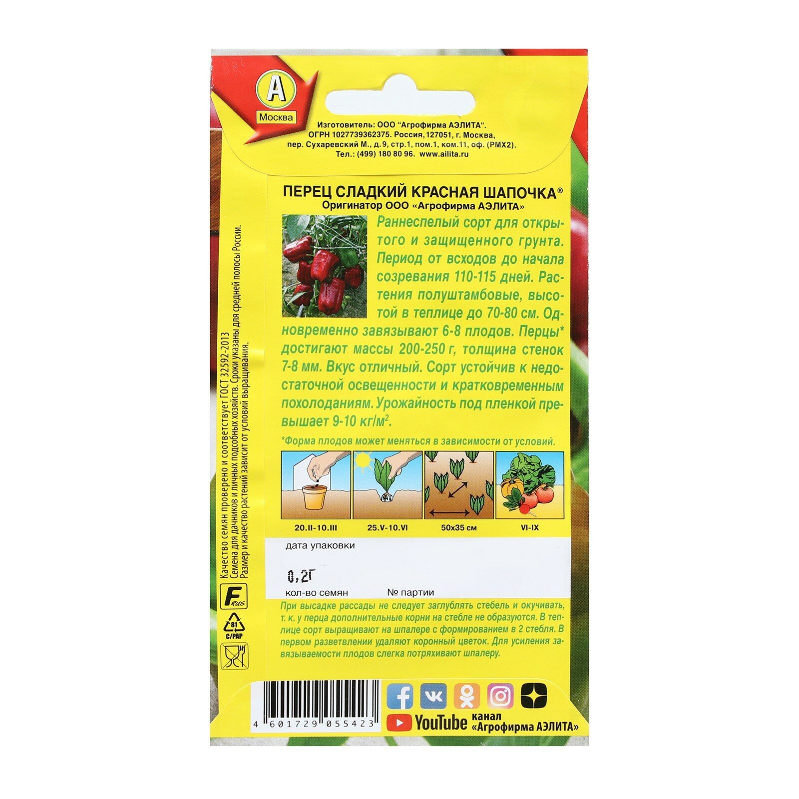 Семена Перец сладкий "Красная шапочка", 20 шт (1шт.) информация: