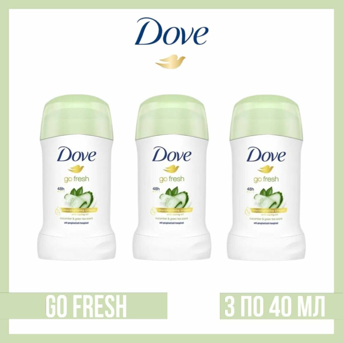 10 цен на Комплект 3 шт. Антиперспирант-стик Dove Go Fresh Свежесть огурца и зеленого чая 3 шт. по 40 мл.