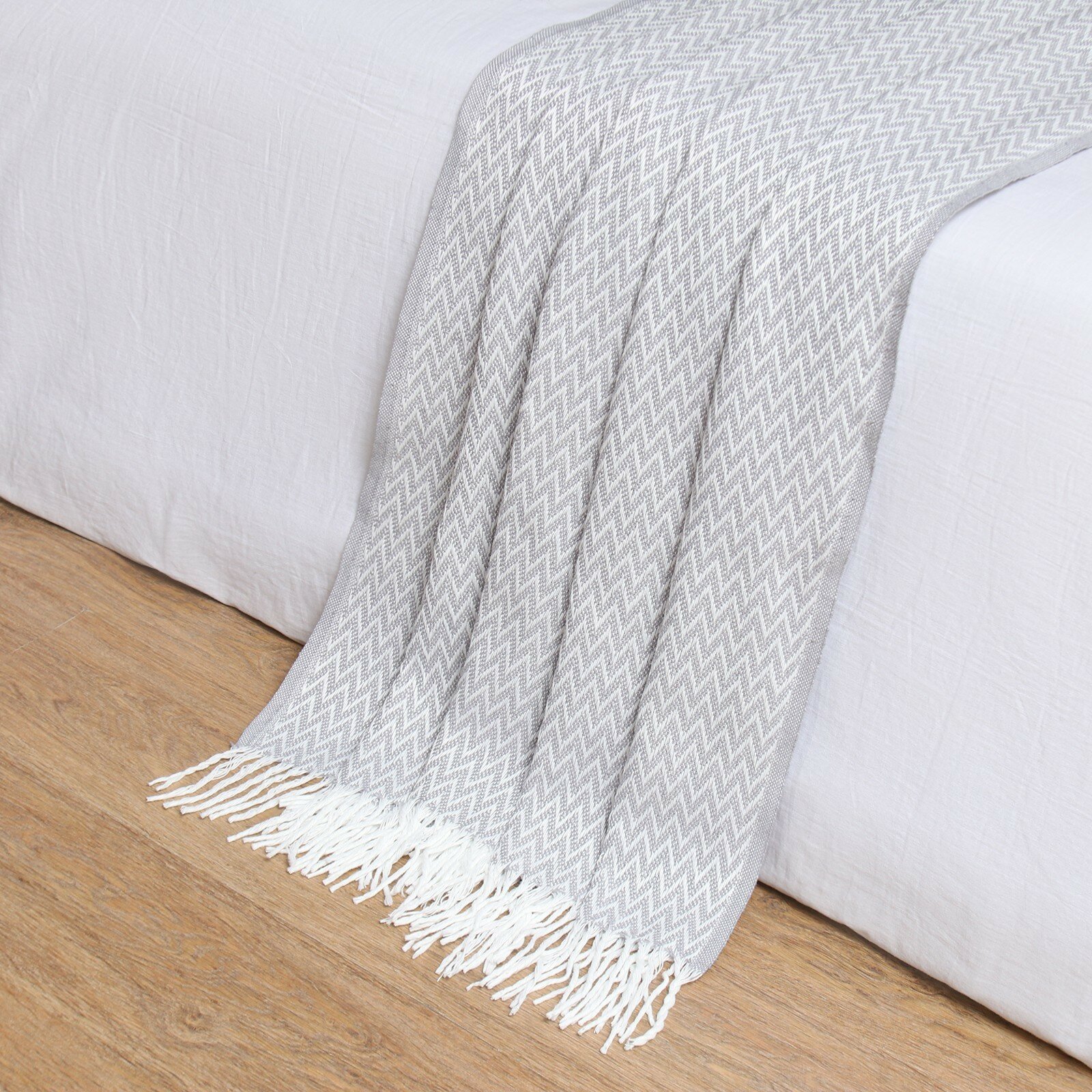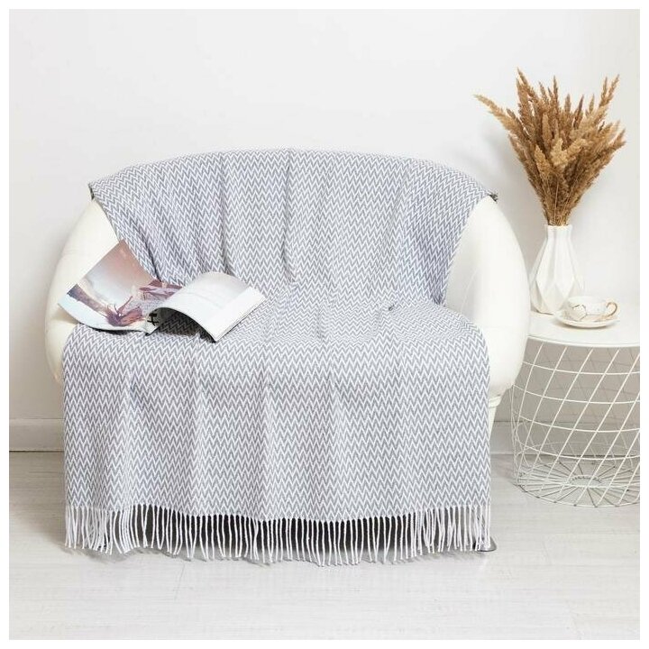 Плед Пикник 140х200см, бел/сер рап.8, хл 20%, пан 40%, пэ 40%