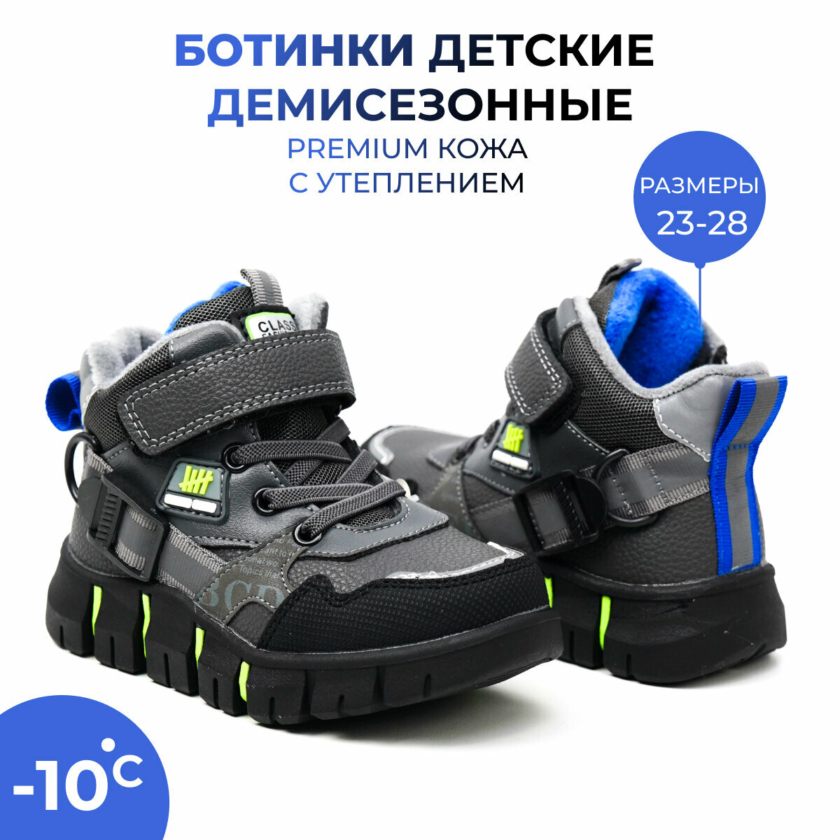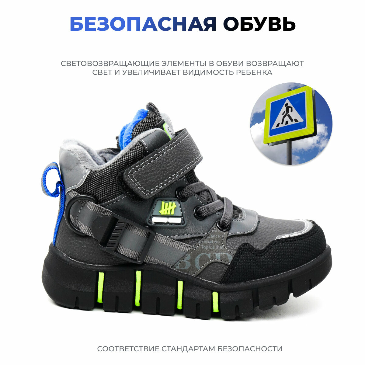 Ботинки детские для мальчика демисезонные, серые, размер 27 информация:
