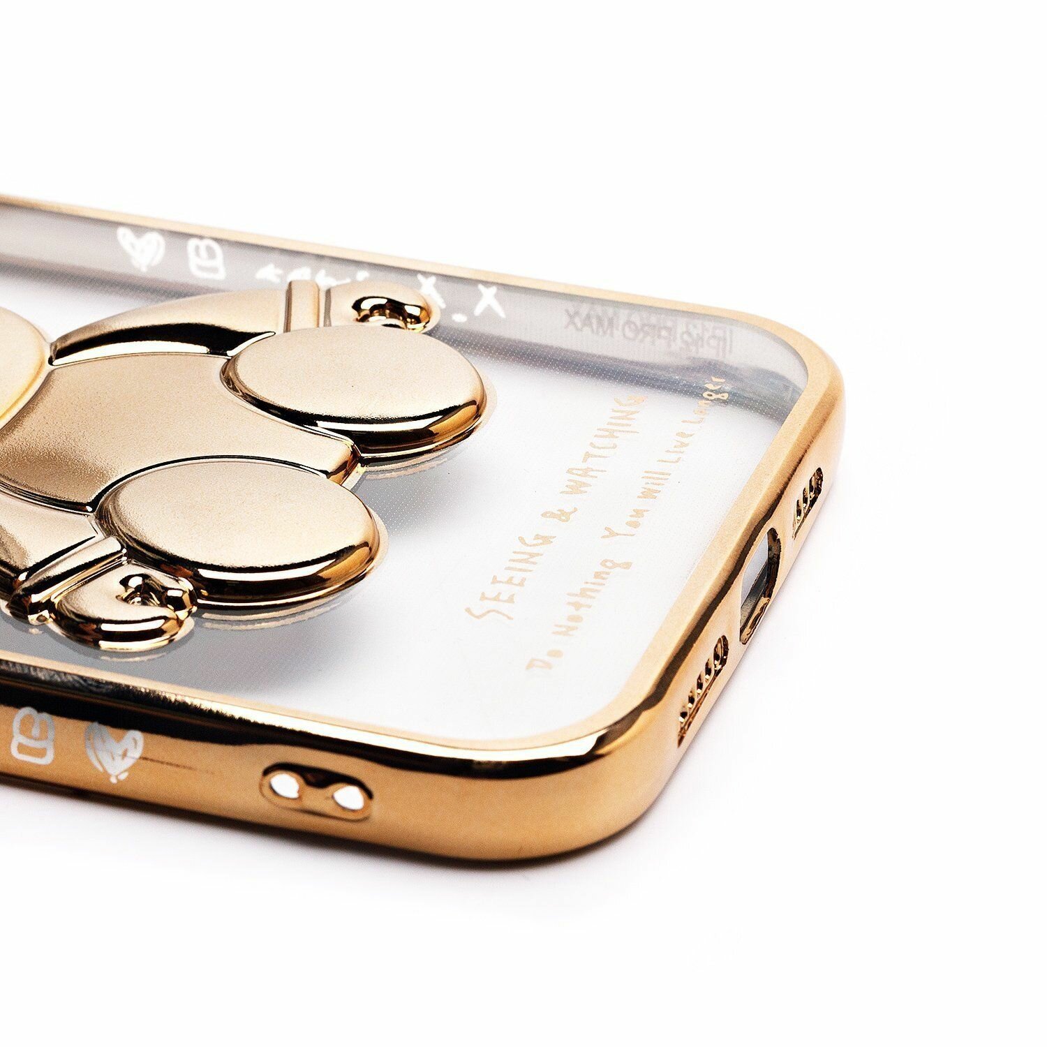 Отзывы на Чехол силиконовый с объемным мишкой на Apple iPhone 12 Pro Max /Прозрачная 3Д накладка с защитой камеры, блестящий Мишка /золотистый