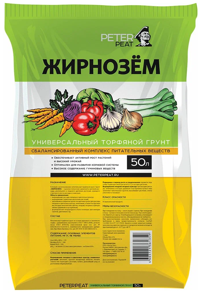 Грунт Peter Peat Жирнозем, универсальный, 50 л информация: