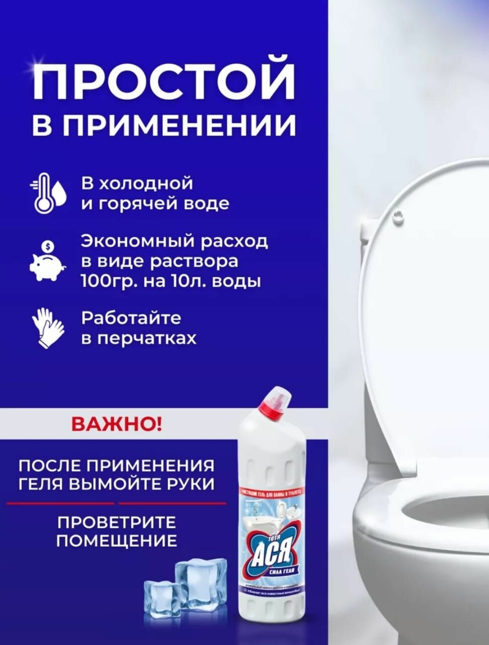 Чистящий гель для ванны и туалета тётя АСЯ сила геля 1л Комплект 3шт информация: