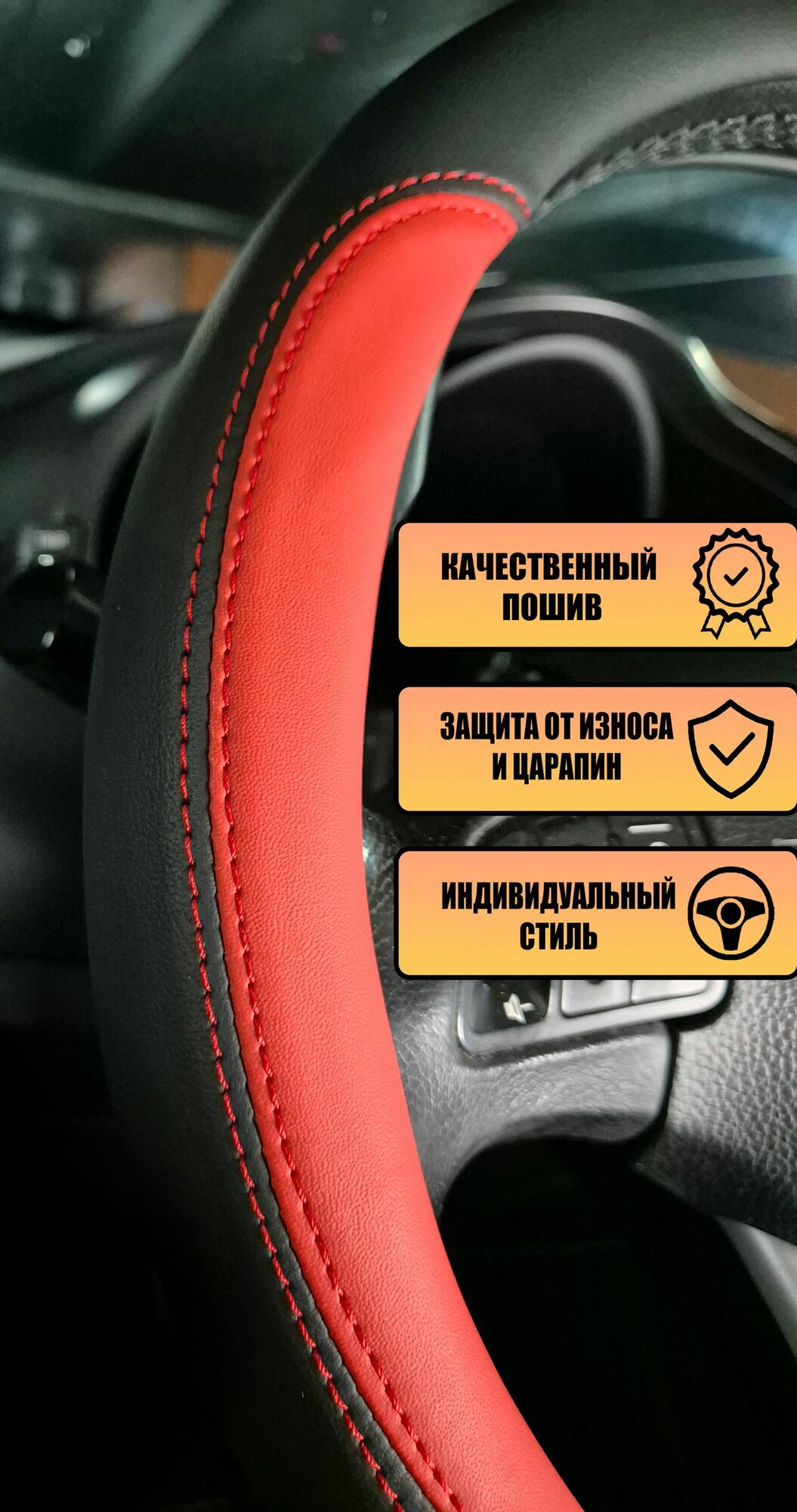 Отзывы на Оплетка, чехол (накидка) на руль Опель Комбо (2020 - 2024) компактвэн / Opel Combo, экокожа, Черный с красным