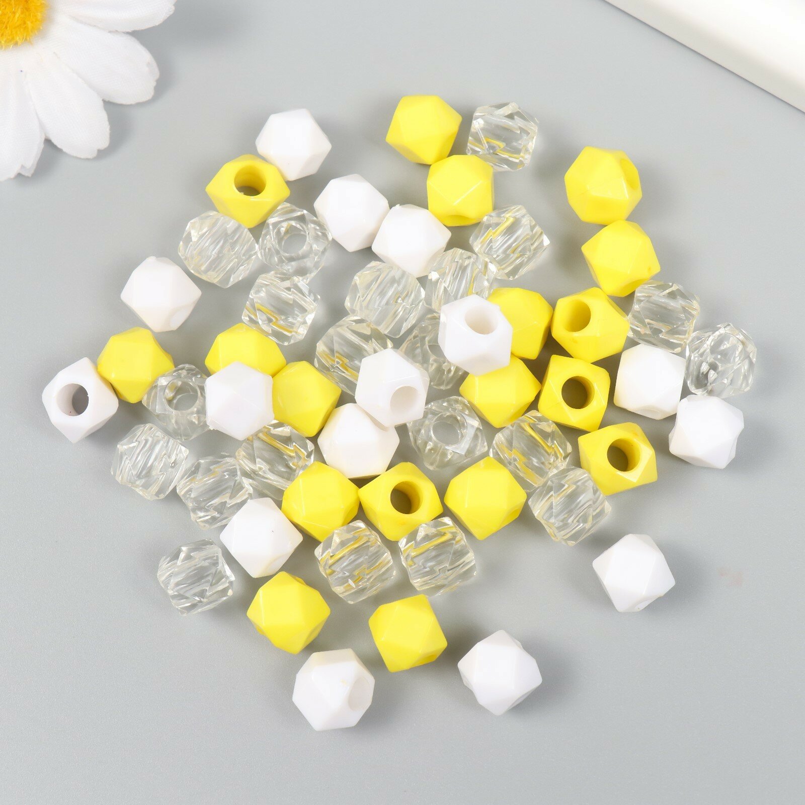 Отзывы на Бусины пластик "Кристалл многогранник. Жёлтый, белый, прозрачный" набор 30 гр 1х1х1 см