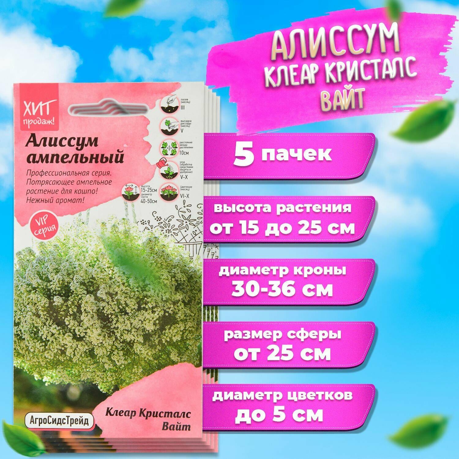 Набор Алиссум ампельный семена Клеар Кристалс Вайт дял выращивания информация:
