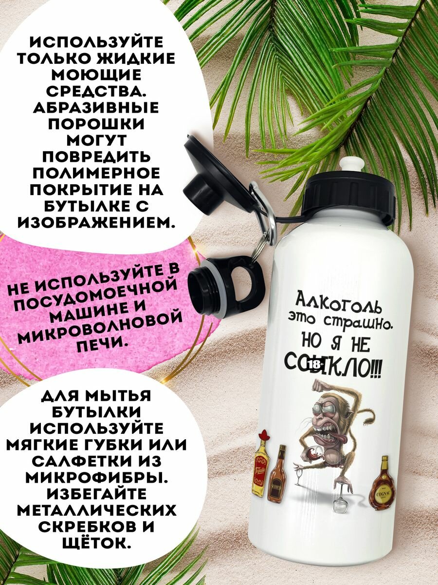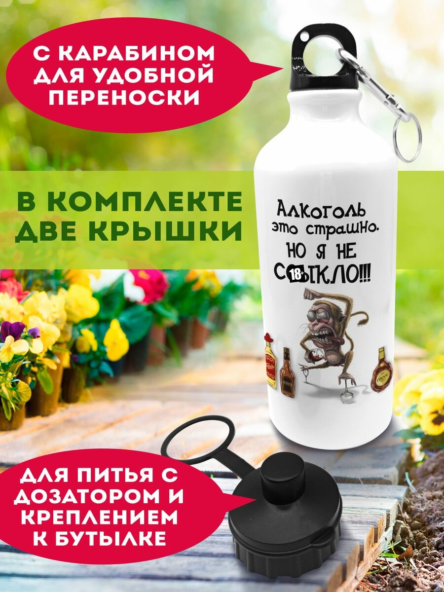 Бутылка 600 мл для воды спортивная Алкоголь это страшно информация:
