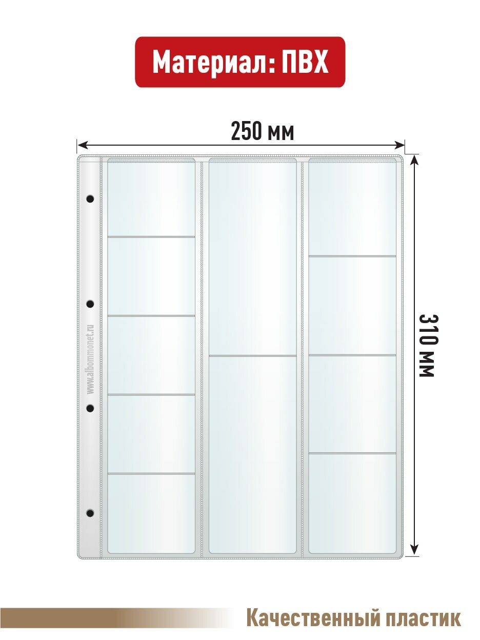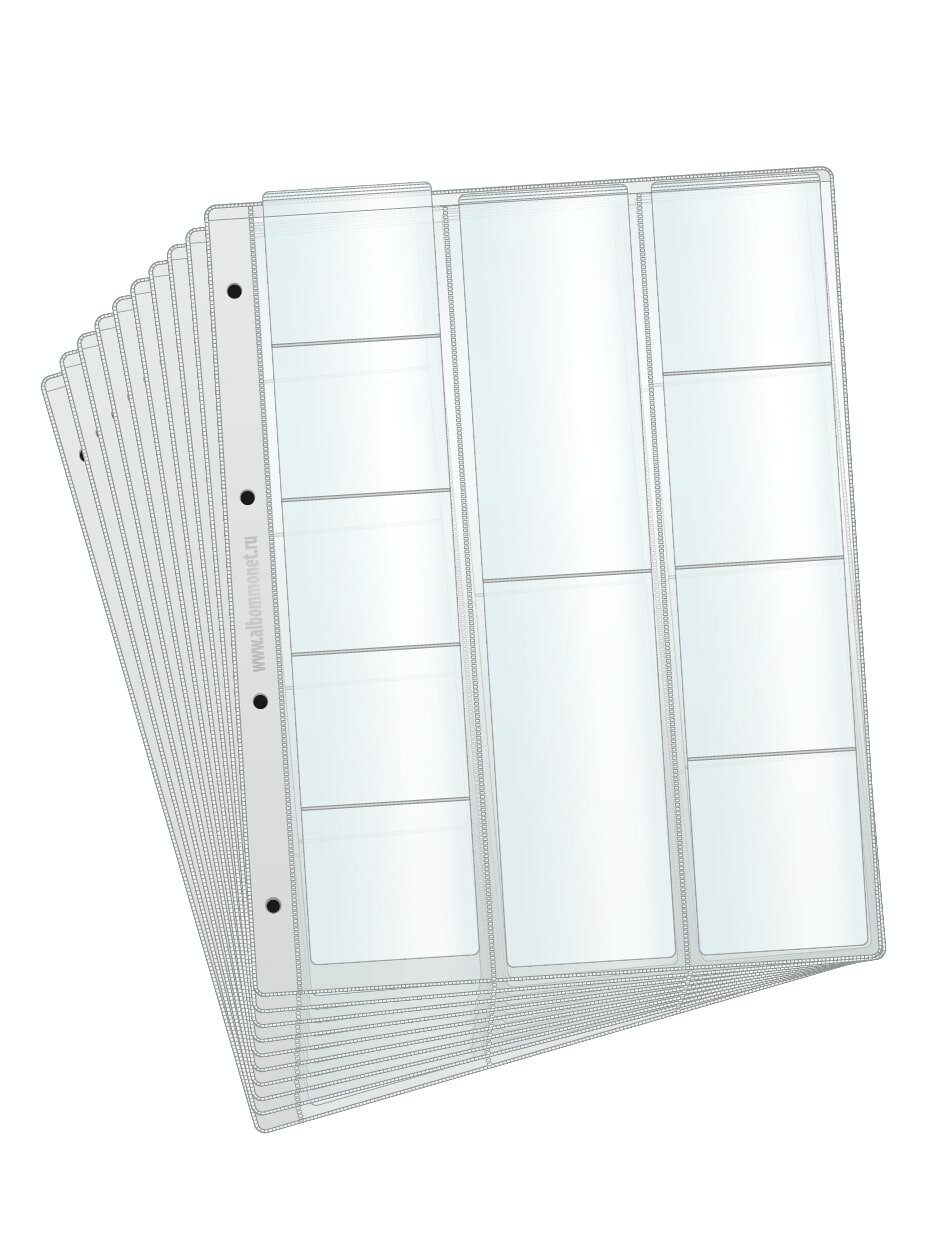 Комплект из 10-ти листов "стандарт" (прозрачных) для хранения на 11 ячеек "скользящий". Формат "Grand". Размер 250х310 мм. информация: