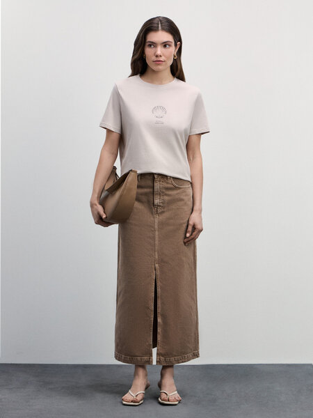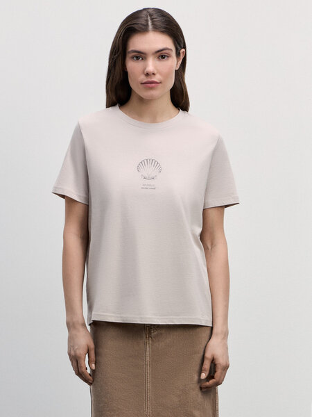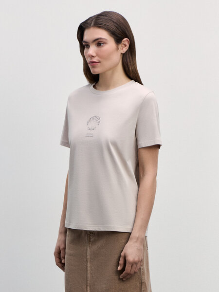 Zarina Футболка прямого кроя с принтом, цвет Бежевый, размер S (RU 44), 4225519419-62 870 ₽