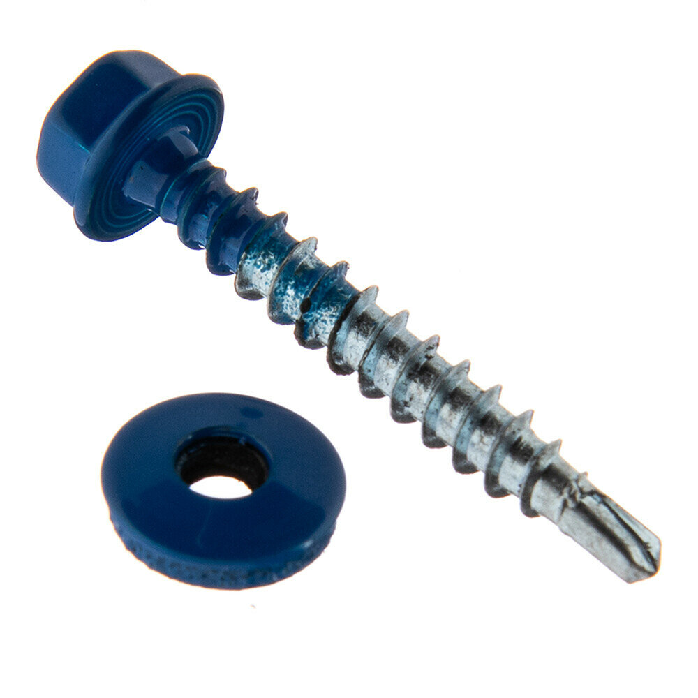 10 цен на Саморезы кровельные с буром 35х4,8 мм металл-дерево синие RAL 5005 Daxmer (250 шт.)