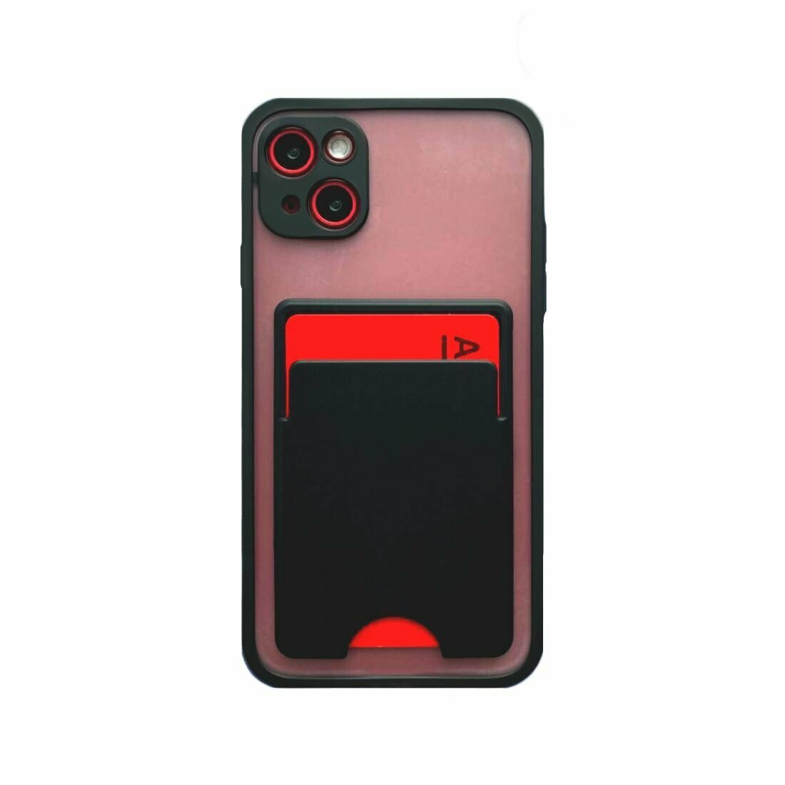 Чехол на iPhone 13 матовый с кармашком для карт и фото черный информация: