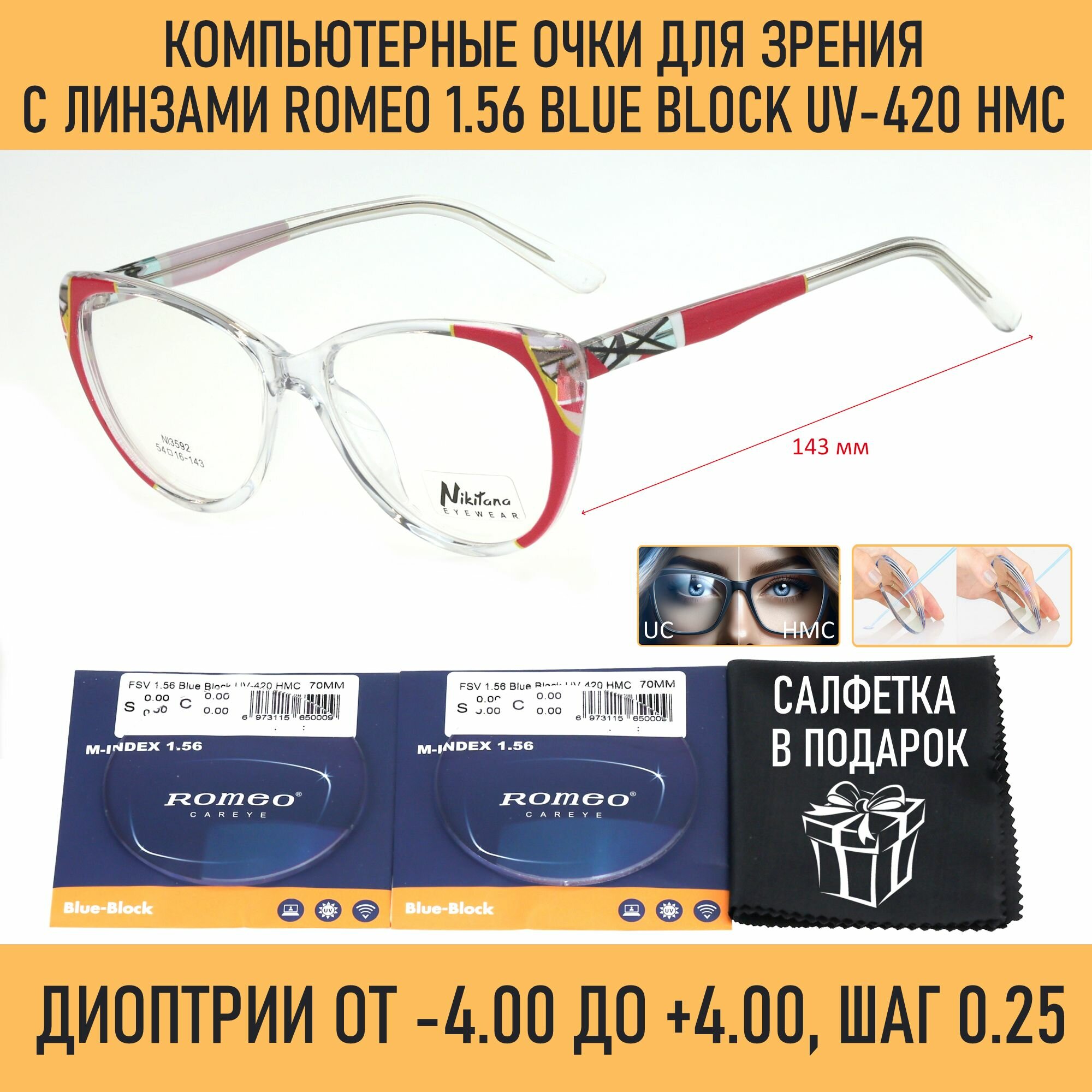 10 цен на Компьютерные очки для чтения NIKITANA мод. 3592 Цвет 2 с линзами ROMEO 1.56 Blue Block +1.00 РЦ 58-60