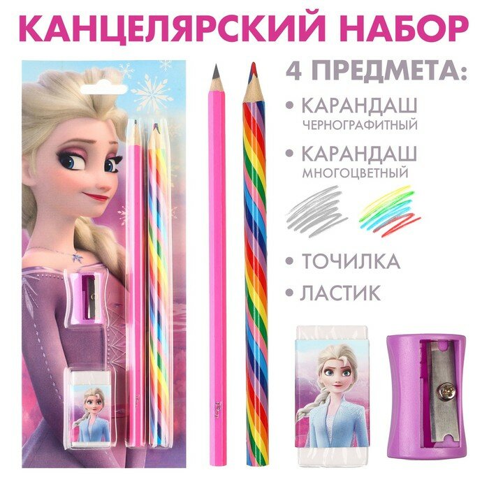 10 цен на Набор канцелярский, точилка, ластик, карандаш, Холодное сердце цвет микс