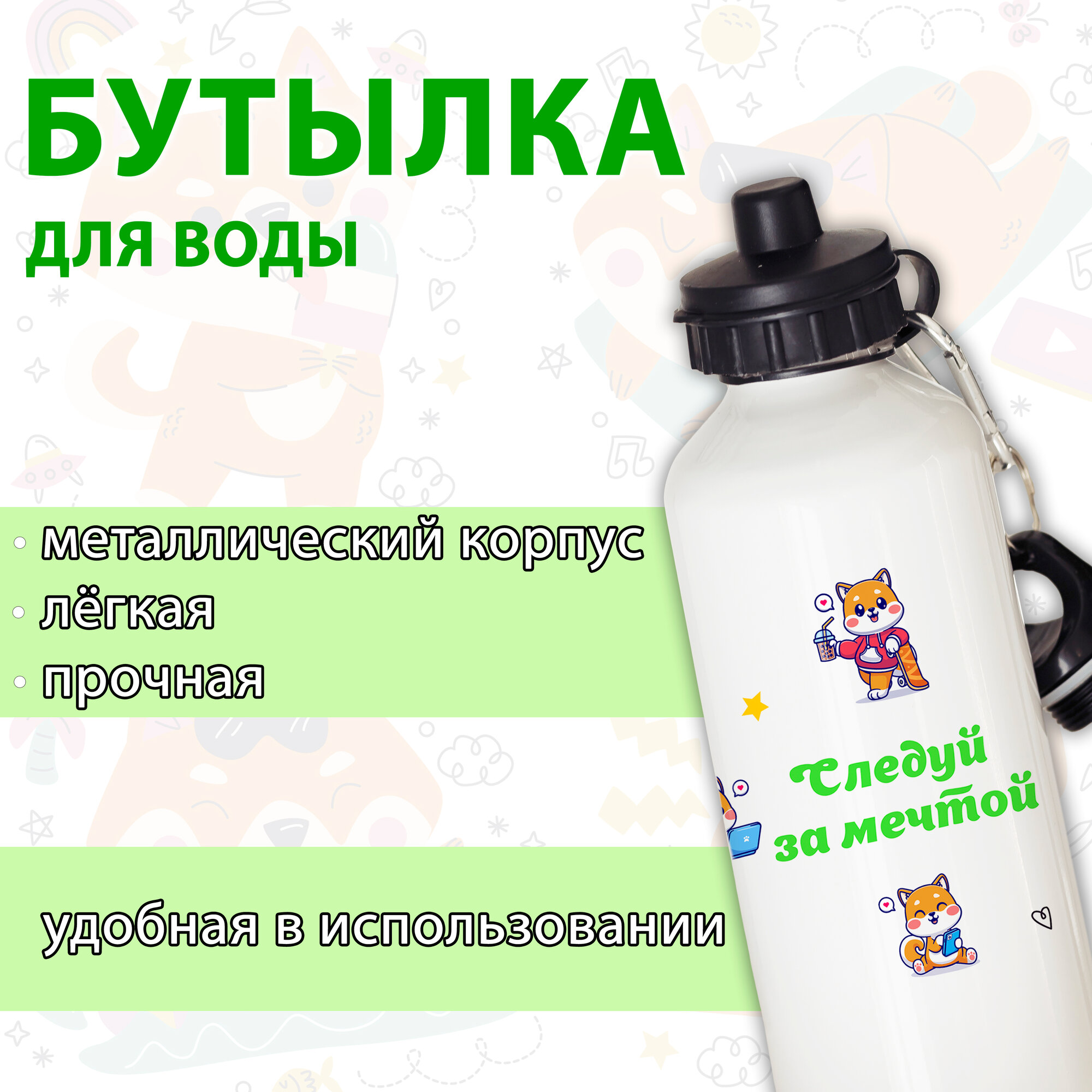 Бутылка для воды/Фляжка "Корги", 500мл информация: