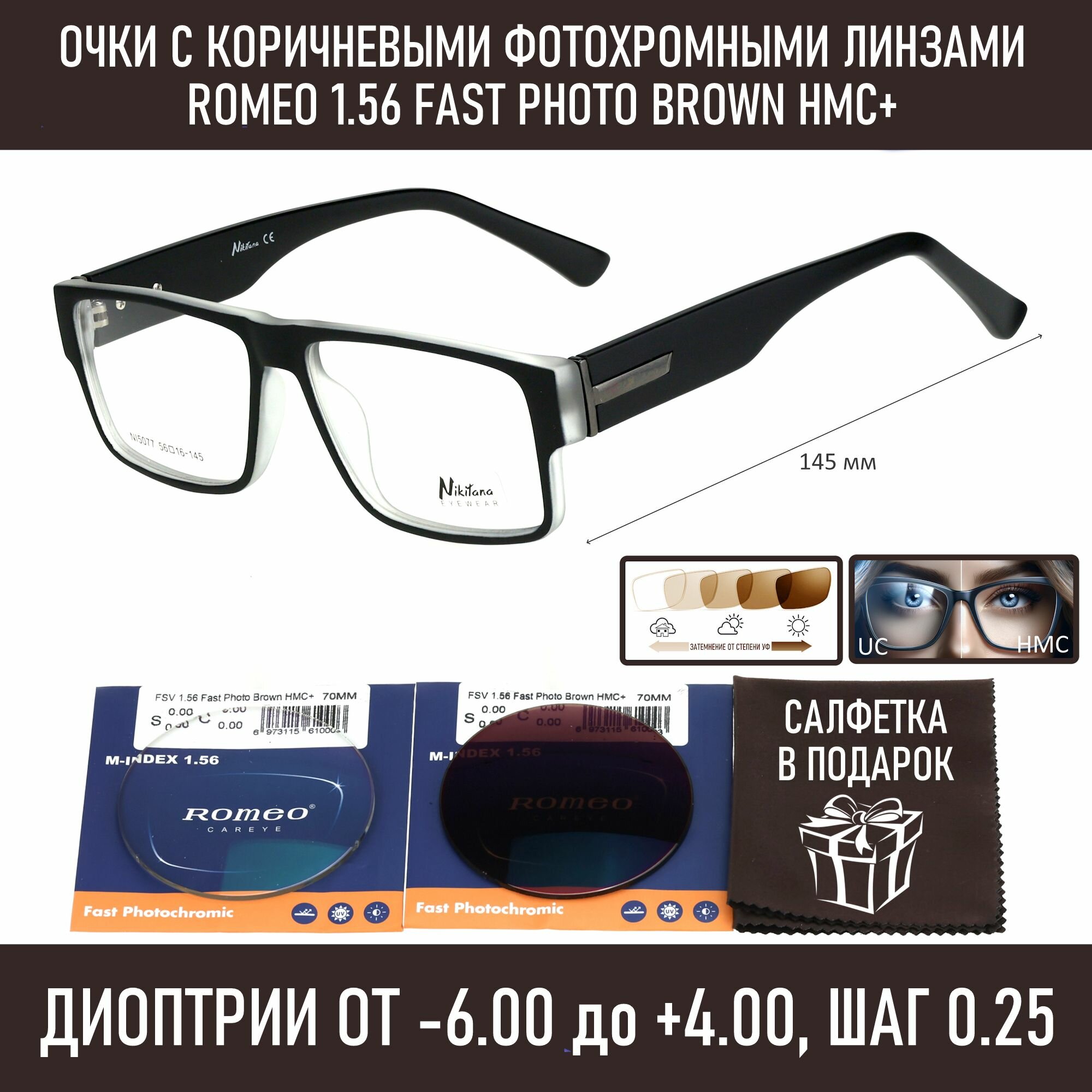 10 цен на Фотохромные очки для чтения NIKITANA мод. 5077 Цвет 3 с линзами ROMEO 1.56 FAST Photocolor BROWN, HMC+ +2.25 РЦ 66-68