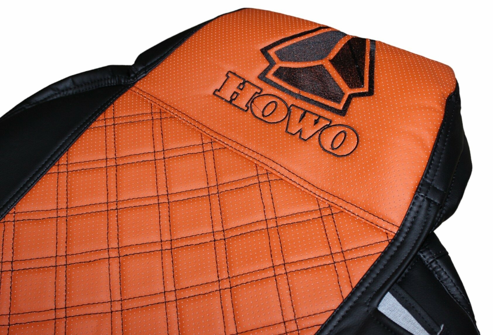 Чехлы на сиденья HOWO 2 ремня (T5G) черная кожа и оранжевая перфорация информация:
