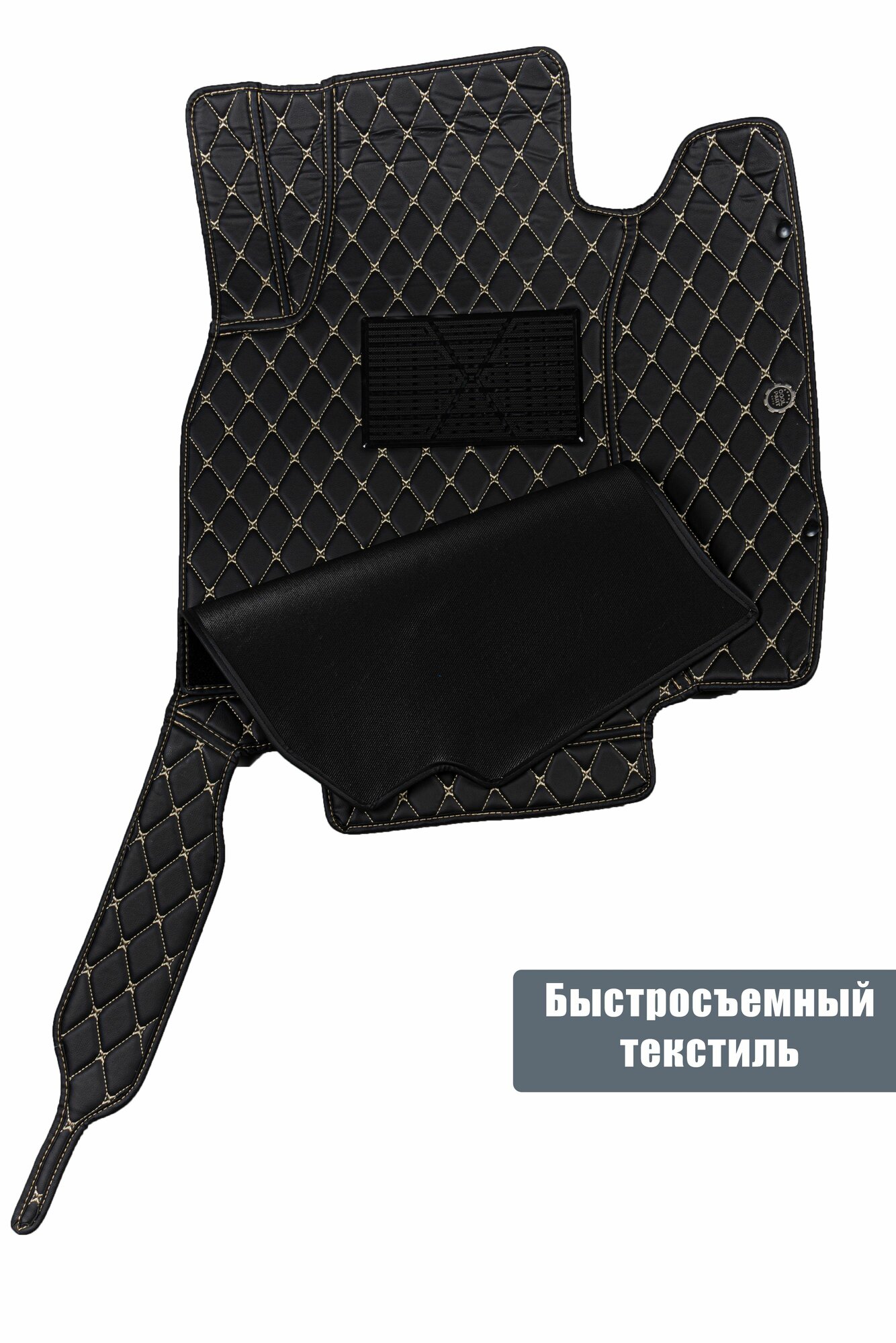Коврики для Чери Тигго 7 (2019-2024). Автоковрики, полики Chery Tiggo 7, экокожа со съемным текстилем 3D/5D, черный с бежевой строчкой информация:
