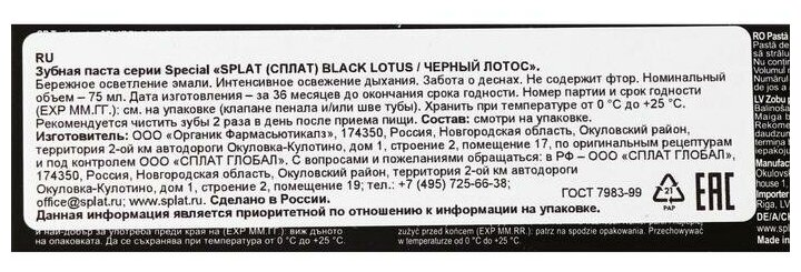 Зубной гель SPLAT Special Black Lotus, 75 мл информация: