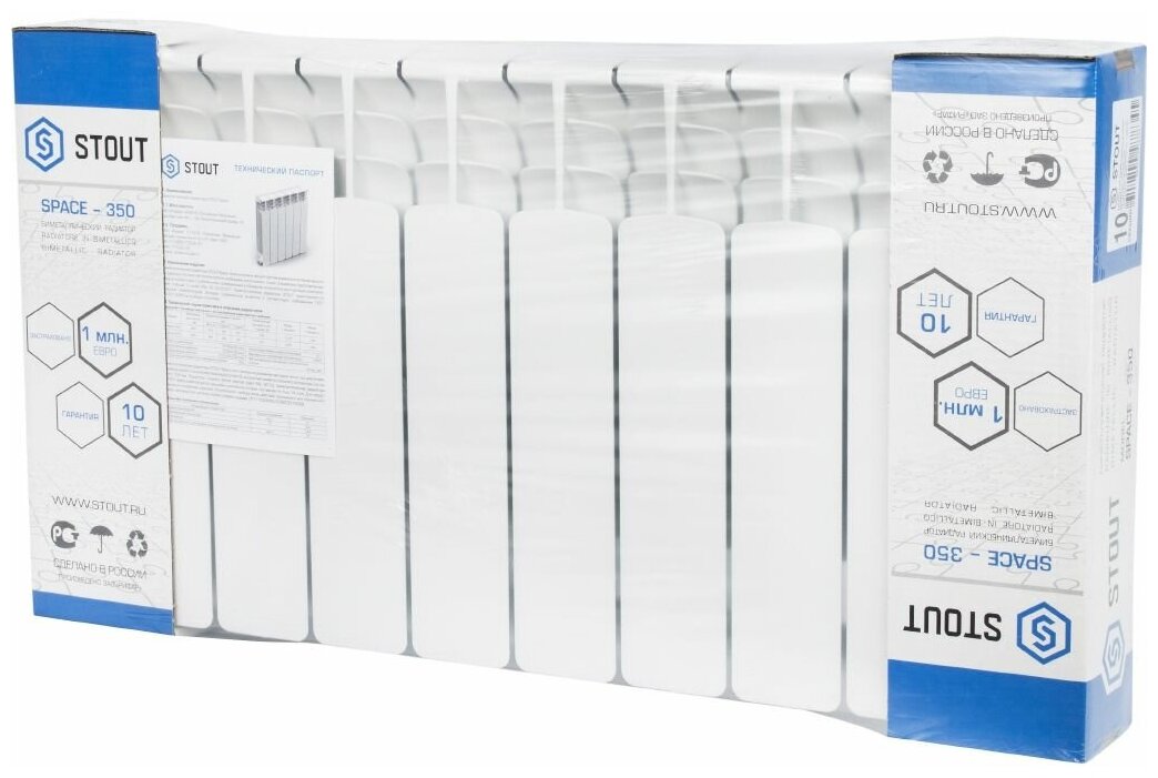 10 цен на Радиатор STOUT Space 350 мм 8 секций, биметал. (боковое подключение) на 10 кв.м.