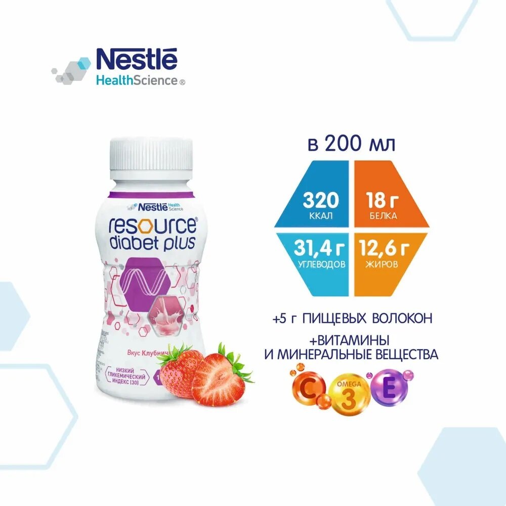 10 цен на Nestle Resource Diabet Plus / Ресурс Диабет Плюс, высокобелковая молочная смесь со вкусом клубники, 200 мл х №4