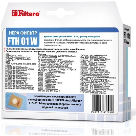 Фильтр FILTERO Hepa FTH 01 W ELX для пылесосов Electrolux, Philips информация: