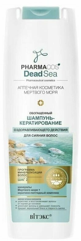 Витэкс шампунь-кератирование Pharmacos Dead Sea Аптечная косметика Мертвого моря Оздоравливающего действия для сияния волос 400 мл