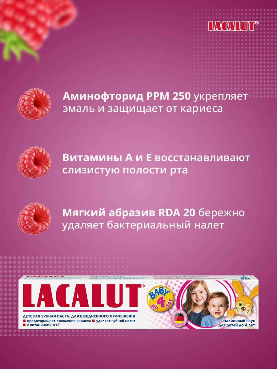 Зубная паста Lacalut Baby от 0 до 2 лет детская защита от кариеса и укрепление эмали, 65 г