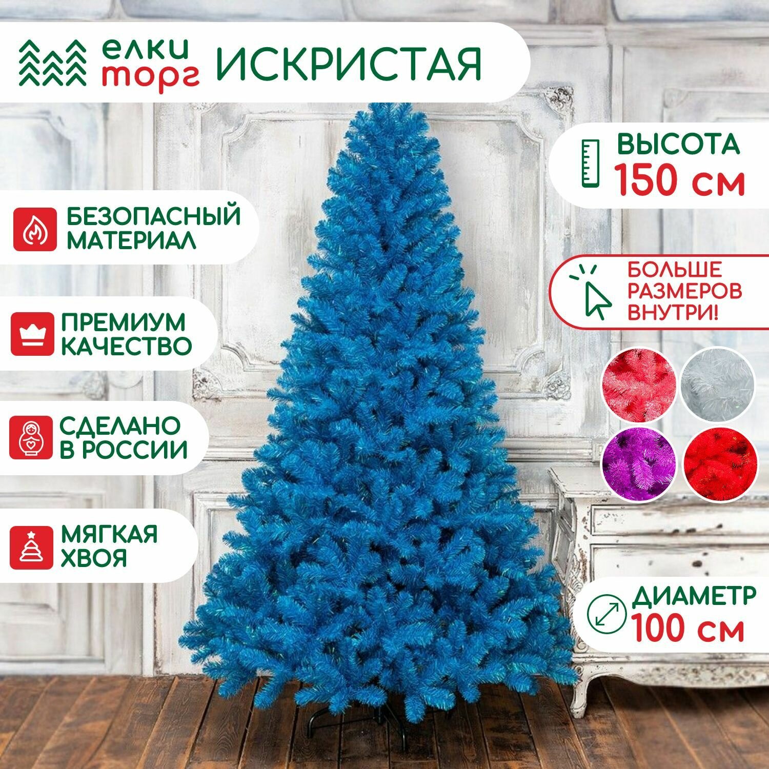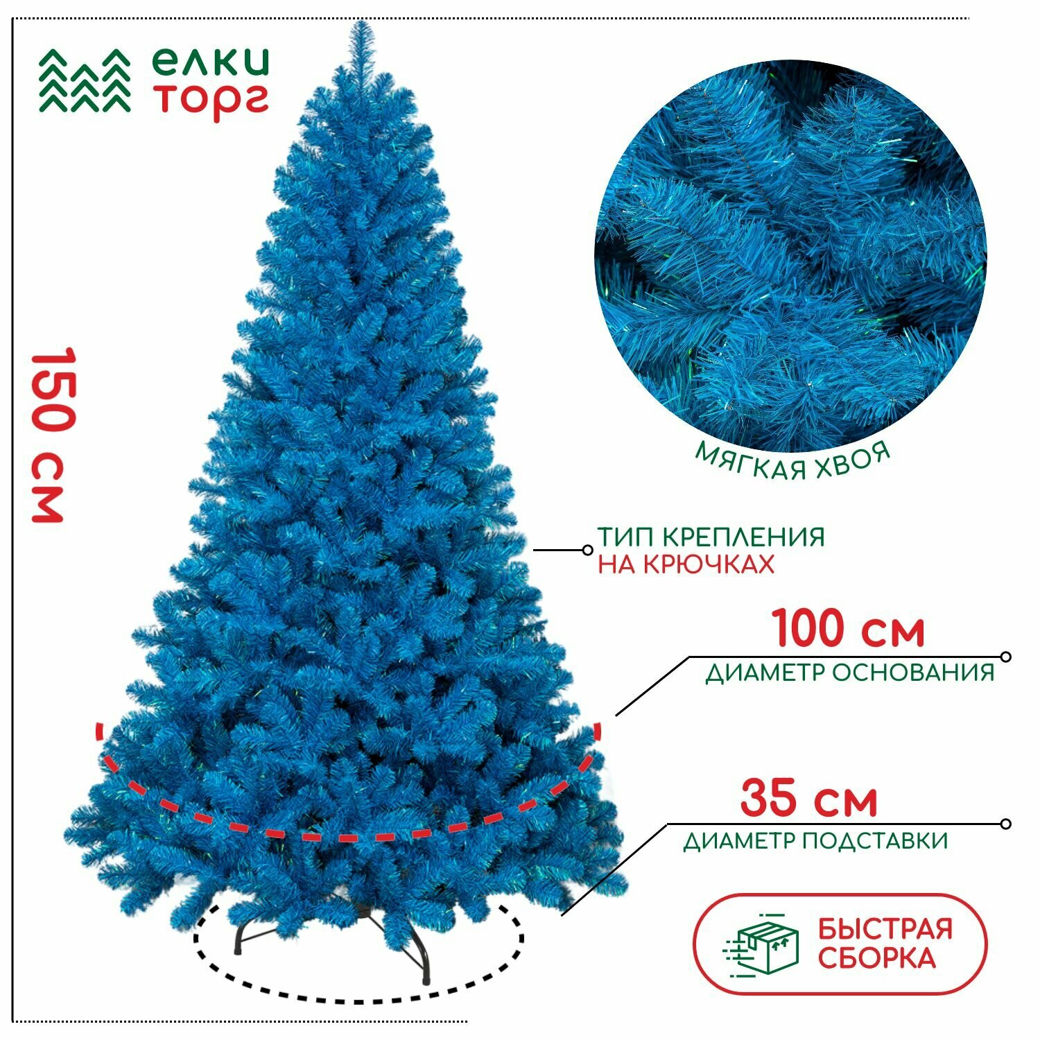 Искусственная елка Искристая 150 см., голубая, мягкая хвоя, ЕлкиТорг (150150) информация: