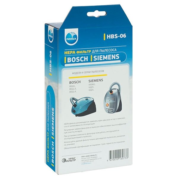 Фильтр Neolux HBS-06 для пылесоса Bosch, Siemens информация: