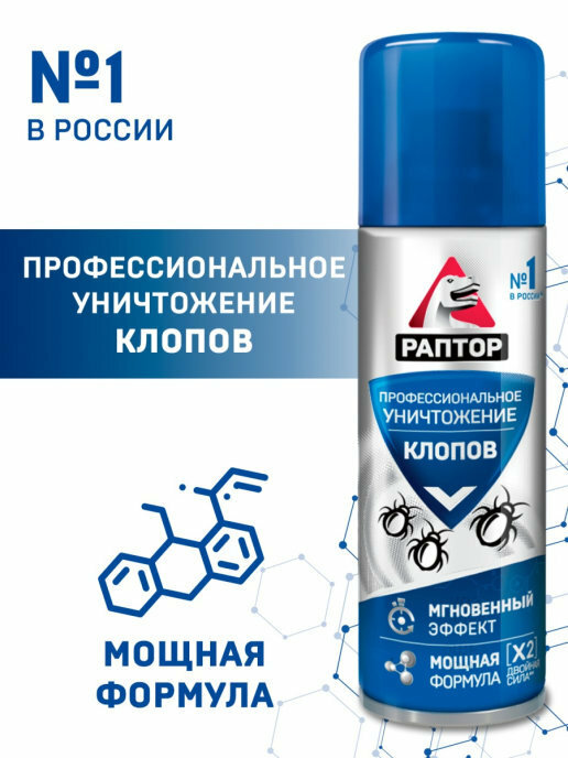 10 цен на Средство от клопов, инсектицидное, раптор, Аэрозоль от клопов, 1 шт 225 мл
