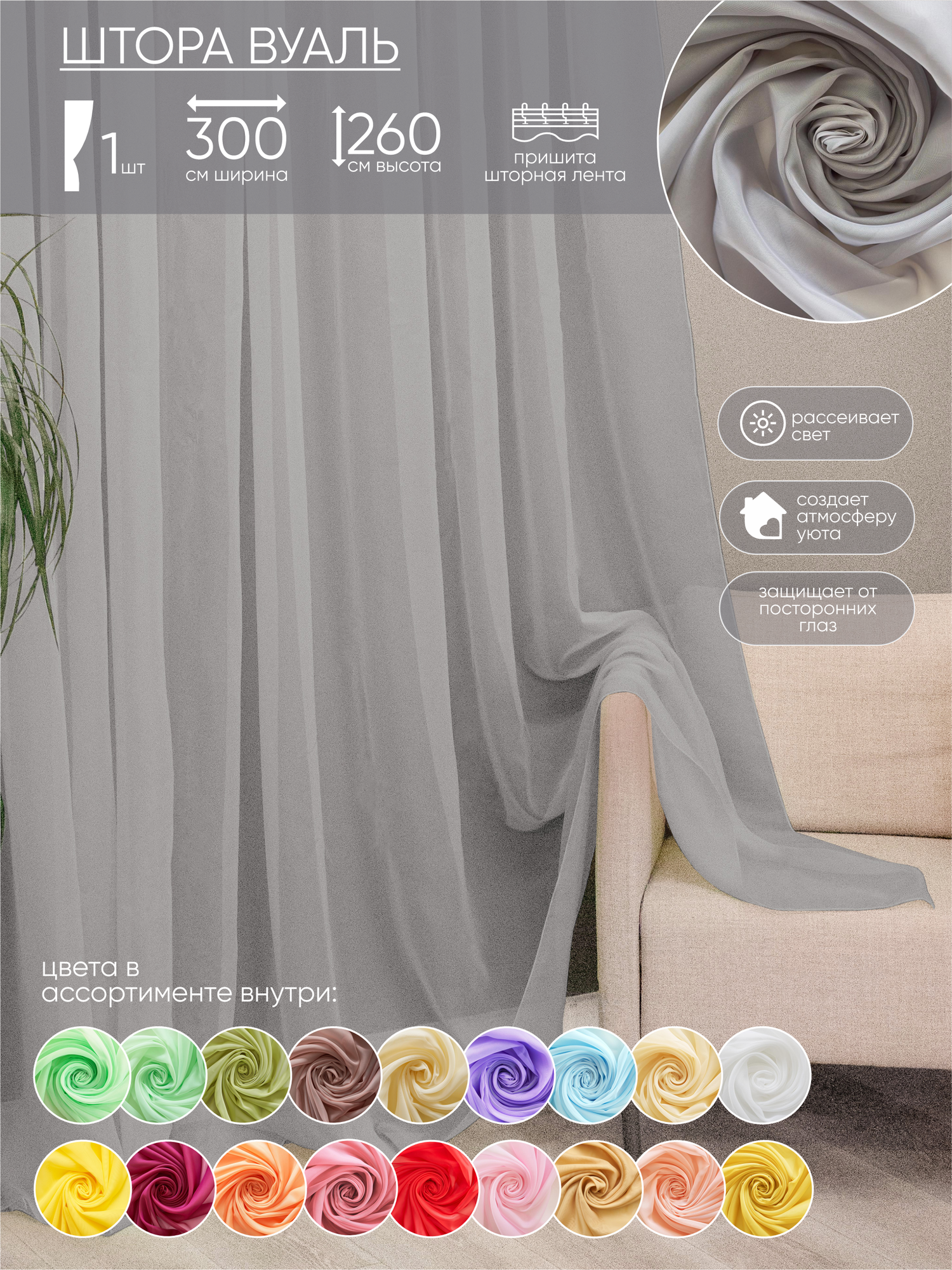 Штора вуаль Witerra 300*260 см серая информация:
