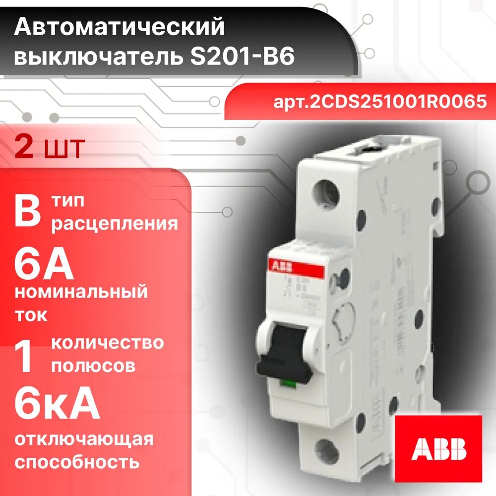 Автоматический выключатель 1п (1P) 6А тип B 6кА S201 ABB 2CDS251001R0065 2шт